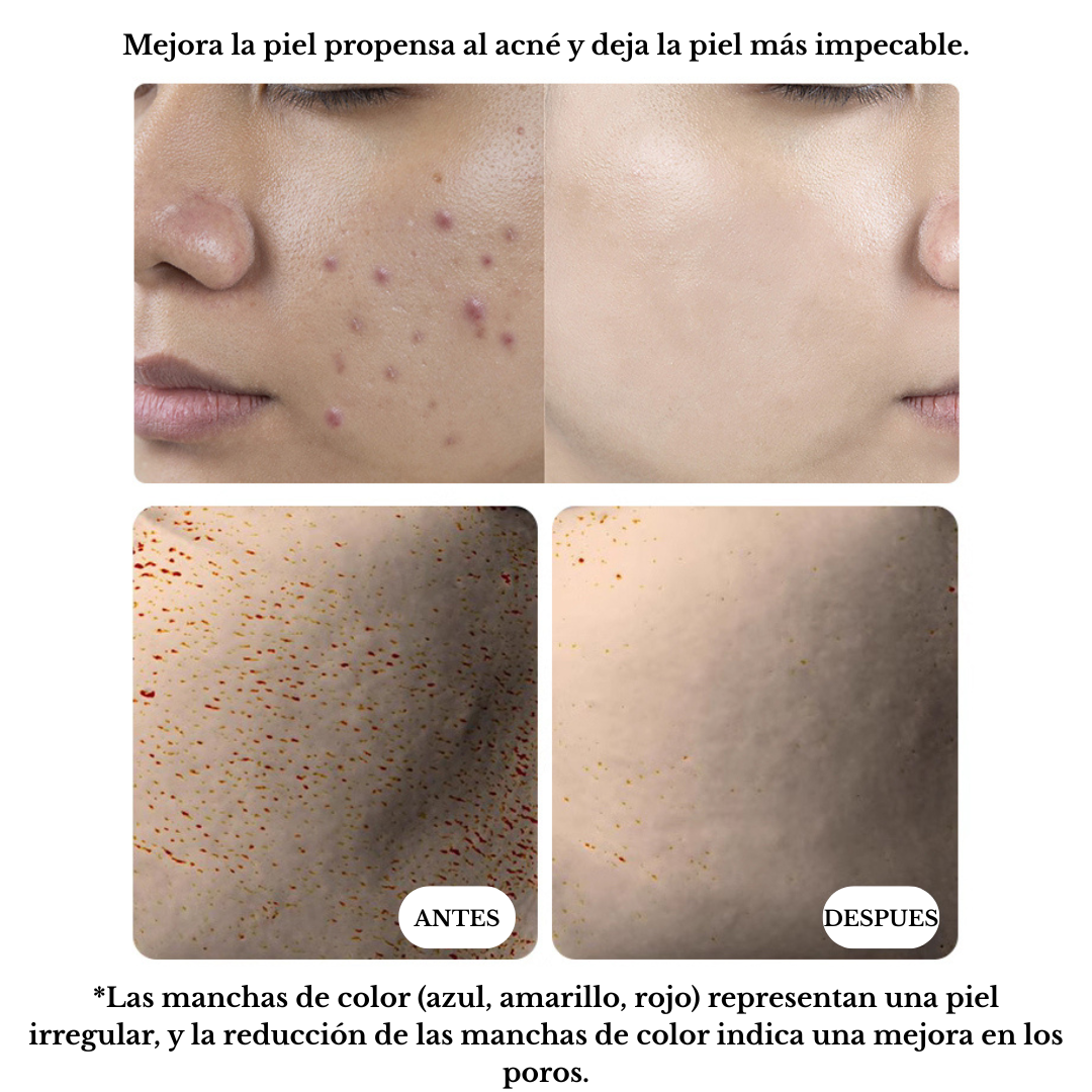 Múltiples funciones: aprieta los poros, aumenta el oxígeno y repara la piel.